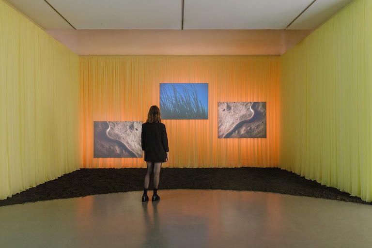 Installation view of Monica Rani Rudhar, The fire in me was lit long ago, 2026 in Rememory: 25th Biennale of Sydney at Lewers: Penrith Regional Gallery, 2026. Photography by Maja Baska