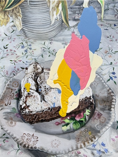 Drawing from personal and familial imagery, Sison’s recent works capture fleeting moments and quiet rituals that hold emotional weight. With a keen sensitivity towards materiality and symbolism, these works explore the complicated dichotomies surrounding femininity and the domestic. They act as visual records of lived experience, where tenderness and turbulence coexist, an interplay between embrace and strain.