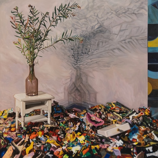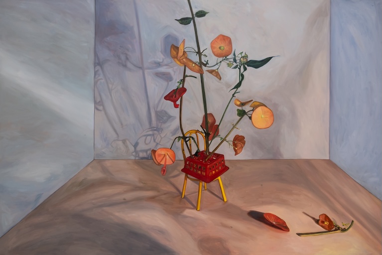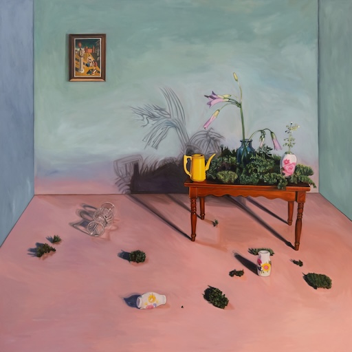 By juxtaposing these two objects of societally imbued femininity and domesticity, Sison forms both an existential and a feminist critique of the situations outside. Plants that were once objects of the exterior recontextualise the interior space by reorganising the tools within the home at their disposal. The hortus conclusus now moves away from the docile and submissive and towards a commanding contemplation that seeks an organic order from the outside world that is held at a breakpoint.