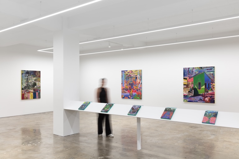 Many of the works are drawn from images found in both personal and public archives: colonial postcards, art historical reproductions, political banners, site photographs, fragments of my own past. I print them at full scale using billboard techniques familiar from Indonesian streets, then paint over them—guided not only by reason, but by feeling and faith. This process is not about mastery. It is about staying accountable to what I touch. Each surface becomes a site of accumulation, not correction.