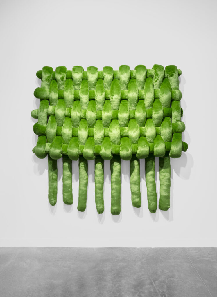 Kathy Temin, Woven: Green (Large), 2025, Synthetic fur, synthetic filling and wood, 180 x 180 x 20 cm