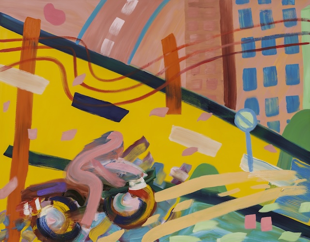 The physical act of painting, in which thought moves through the body–hand to brush, brush to surface–shapes Chanvipava’s exuberant vision of a hopeful present and future. These gestures are preserved in thick layers of paint, forming highly textured works.