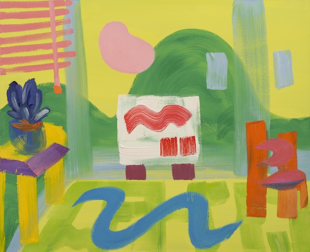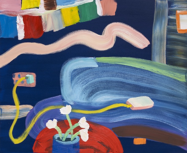 In the otherwise ambiguous works, the titles are the singular thematic clue offered. Aptly, Call Me By My Name addresses topics of identity and recognition. Often exploring the complexities of selfhood and performance in his practice, this presentation draws from Chanvipava’s experiences as a Thai artist of Chinese descent living in England, connecting him to broader conversations on diasporic life at large. Amid pressures to assimilate or perform one’s identity, Chanvipava reclaims the complexities of his identity through his vibrant, eye-catching, almost sculptural paintings. Call Me By My Name is an invocation, and a desire for his real self to be named and simply be.