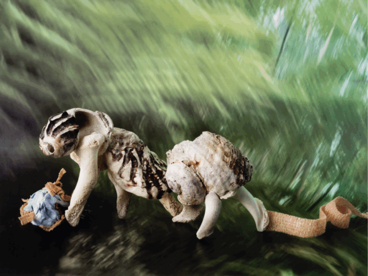 Rosemary Laing’s singular photographic practice extends to the expanded fields of performance and installation, exploring complex themes of colonialism, land ownership and cultural memory in Australia. Here, we present an assemblage of Laing’s shellwork sculptures, created from repaired, sometimes bandaged, shells collected from coast near her home in Swanhaven, an elegy to those in search of safety.