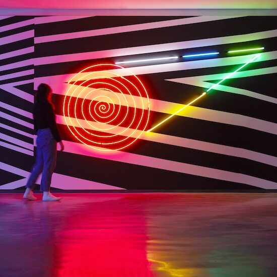 In 2017, Andrew’s artistic career was recognised with a large-scale, immersive solo exhibition, Brook Andrew: The Right to Offend is Sacred, at the National Gallery of Victoria, Melbourne. In 2022, Andrew premiered his multi-channel video, live performances and installation GABAN (2022) in YOYI! Care, Repair, Heal, Gropius Bau, Berlin. GABAN was also presented as a live performance over the opening weekend of the Art Gallery of NSW’s new building in 2022.