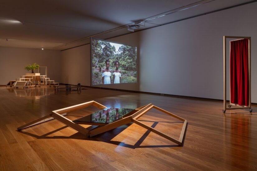 Mónica de Miranda’s (b. 1976, Portugal) multidisciplinary practice examines the complex social, political and poetic relationships between bodies, territories, history and the earth. Spanning drawing, sculpture, installation, photography and film, de Miranda works on the boundaries between documentary and fiction. Her protagonists stand on frontiers, between self and other, past and present, in an oeuvre that fabulates narratives of resistance informed by embodied research into decolonial thought, practice and ecologies of care.