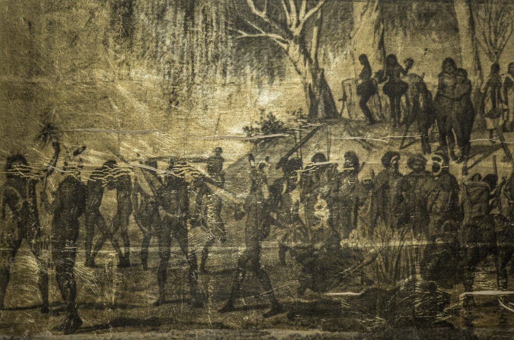 When I first entered ethnographic archives, I saw not only omission but also violence, in the classifications, the pseudo-science, the cold categories, the voyeuristic fascination. Yet, I also saw complex and sometimes even respectful depictions, such as Blandowski’s sketches, which — although framed by colonial intent — presented Aboriginal people with more dignity than many of the grotesque caricatures made by explorers and amateur ethnographers. Those contradictions fascinated me. They revealed how representation is never neutral. I realised early on that these archives — these tangled repositories of trauma and curiosity — needed to be interrogated. So, my work in archives began as both a personal and political necessity — an attempt to understand how others had tried to define us and to reclaim the right to define ourselves.