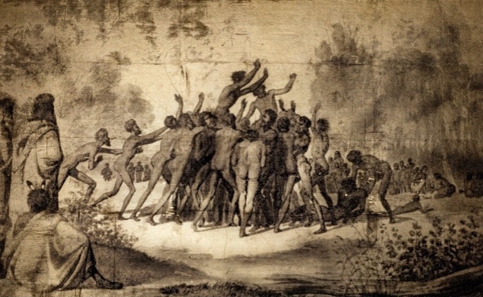 The colonial image never disappeared; it just changed shape. Many of the stereotypes that circulated in nineteenth-century scientific illustrations and postcards still appear today in film, tourism, advertising, sporting commentary and political rhetoric. They re-emerge in debates about authenticity, in the fetishisation of “traditional Aboriginality,” and in the persistent idea that Indigenous people belong in the past rather than the present. Even something like the early Grook football images — representing an Aboriginal football game played with a possum-fur ball, which I use in Australia I — have been absorbed into the mythology of Australian Rules Football without proper acknowledgment of their Indigenous origins. The archive is not separate from contemporary culture; it is its engine room. Our national identity has been built upon fragments of these images, whether romanticised or dehumanised. My work exposes these echoes. By enlarging historical scenes, making them reflective, or activating them theatrically, I make visible the hidden scaffolding that shapes how Australians continue to see themselves and each other.