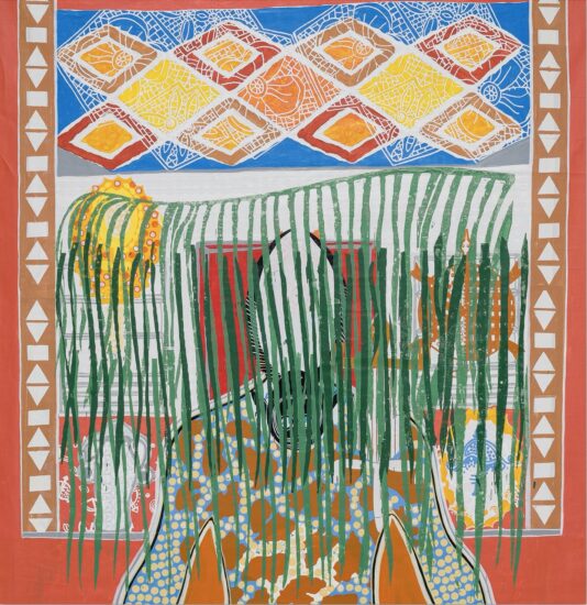 Ames Yavuz is pleased to present Mariwô: A Estética do Deslocamento, the first solo exhibition in the UK of Brazilian artist, Alberto Pitta. On view will be new works from Pitta’s Mariwô series, exploring the spiritually significant motif of the Oil Palm frond through screen-printed and painted textiles.