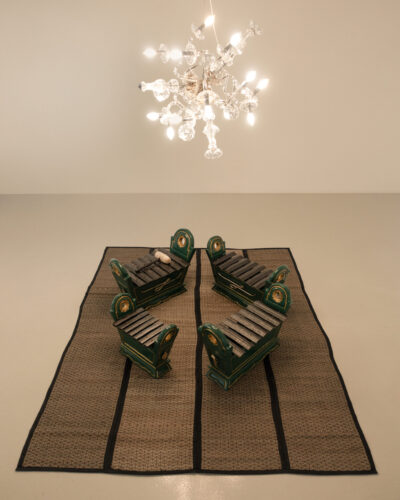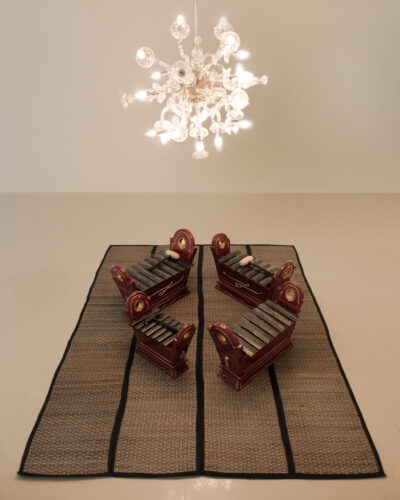 The works transform remnants from the railway tracks. The steel rail, an instrument of double violence from colonial extraction and imperial forced labour, is reworked into tone plates of a gamelan installation — an ensemble of traditional Indonesian instruments played at ceremonies. The gamelan is used here as a vessel to transmit discordant feelings of not just grief, longing, and loss, but also of recognition and healing.